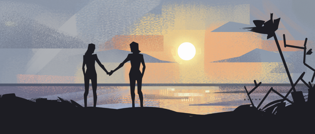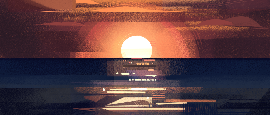 Inspired by innovation and experimental styles in animation, we pushed for a bold, “blocky” visual style with a recognizable contrasting orange – blue color palette.